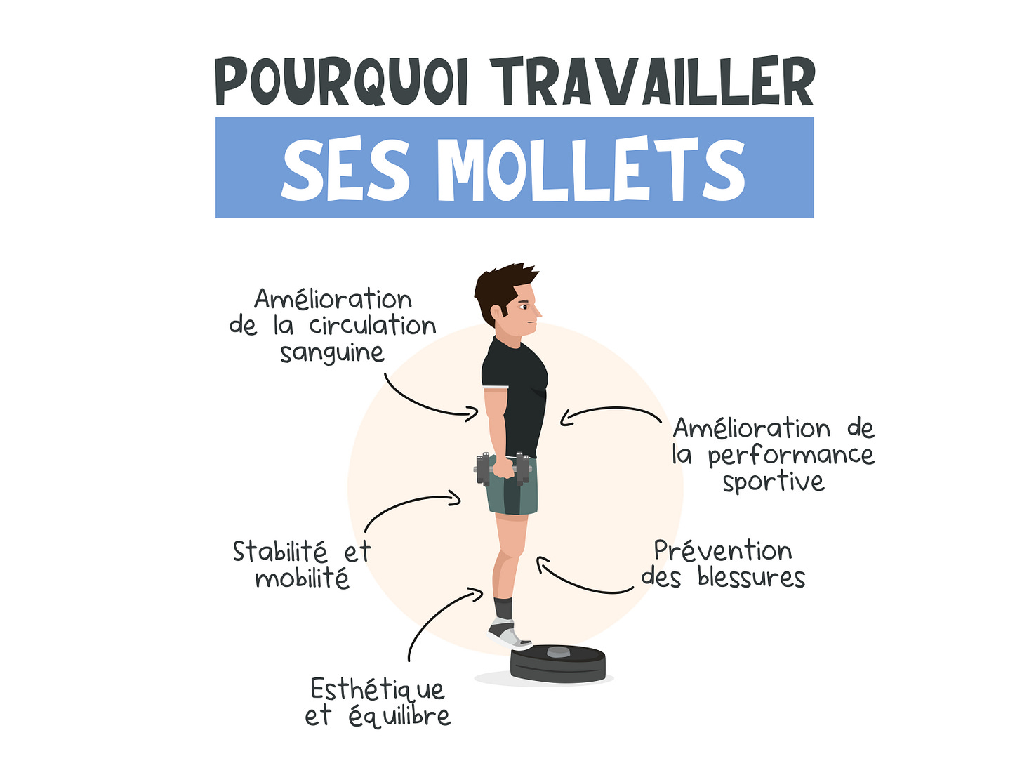Le renforcement des mollets permet de prévenir les blessures, d’améliorer la performance sportive et de maintenir une bonne stabilité. Des mollets forts permettent une meilleure propulsion et une plus grande endurance lors de la course, du saut et d’autres mouvements explosifs. Ils jouent également un rôle important dans la circulation sanguine (bon pour les varices et jambes lourdes) et la stabilité de la cheville, réduisant ainsi les risques de blessures et de douleurs. D'un point de vue esthétique, des mollets tonifiés contribuent à une silhouette harmonieuse et athlétique.